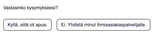 Kyseessä on pilottivaihe, jonka aikana kehitämme järjestelmää jatkuvasti. Vastauksissa voi esiintyä epätarkkuuksia. Korostamme viesteissä, että kyseessä on tekoälyn luoma vastaus.